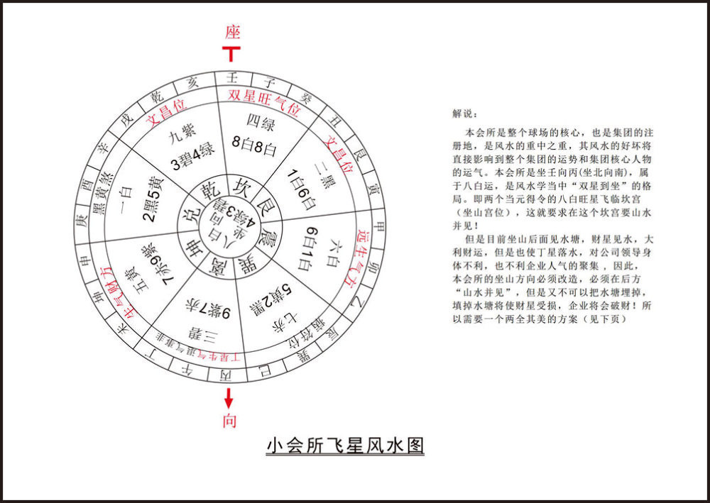 【办公风水布局设计全案】玄空风水图图例2(玄空风水飞星图是测定本建筑风水格局的最精妙之法,是江东霖大师到现场用罗盘亲自测定线位后通过运算和排列出来的神奇之图)