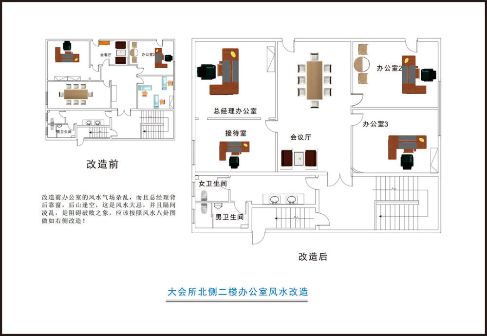 【办公风水布局设计全案】图例4(办公室风水设计全案是目标最先进、最神奇、最精密、最实用的企业办公风水布局方式,因为风水设计全案不仅仅要根据办公室的风水格局来进行催旺化煞、醒龙开运,更要根据这家公司企业的重要核心人物以及各级主管的每个人的生辰八字,去定位每个办公室的位置和内部布置)