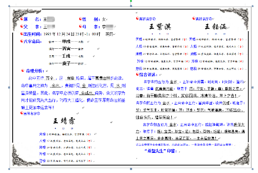 第一步:客户亲自到公司或以短信方式报出个人父母的名字、性别;个人的出生年、月、 日、时辰并注明是公历还是农历。